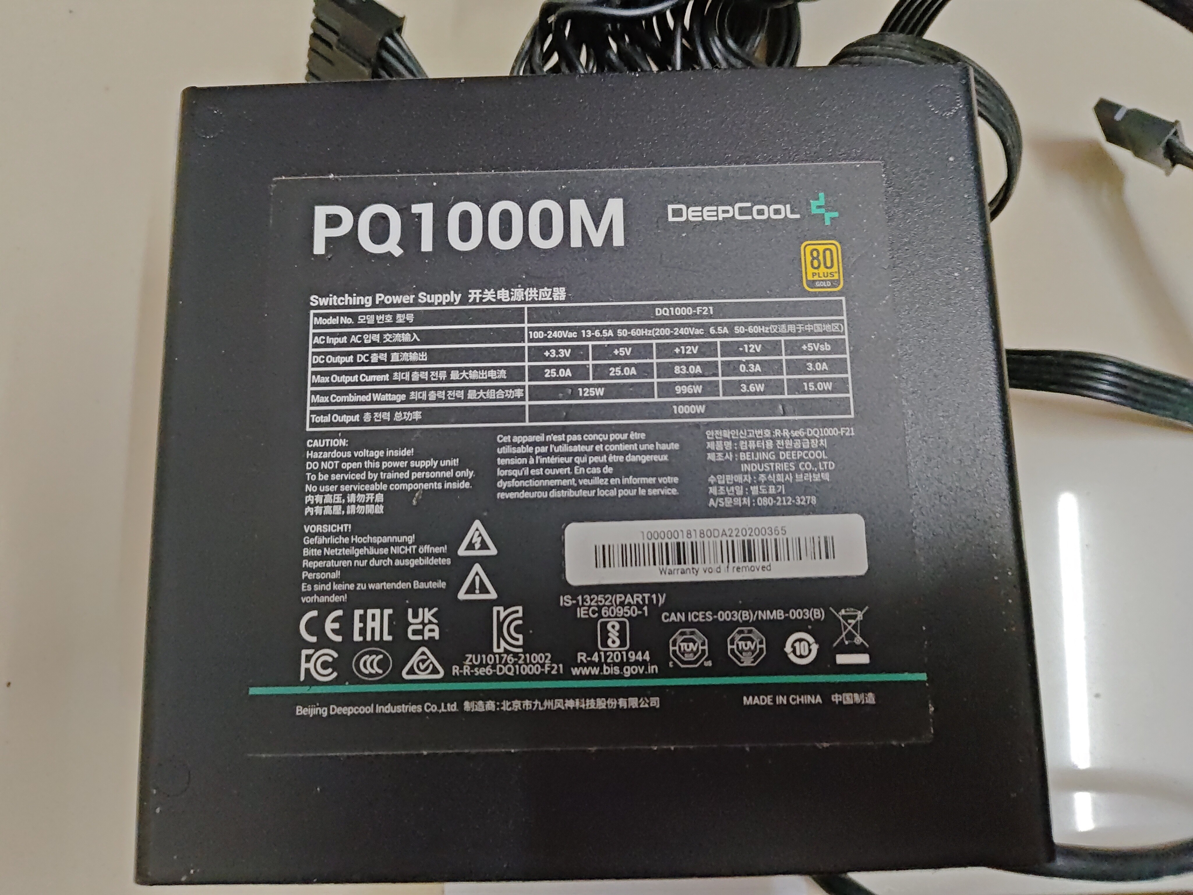 1000W PQ1000M DeepCool Power supply has stopped working.