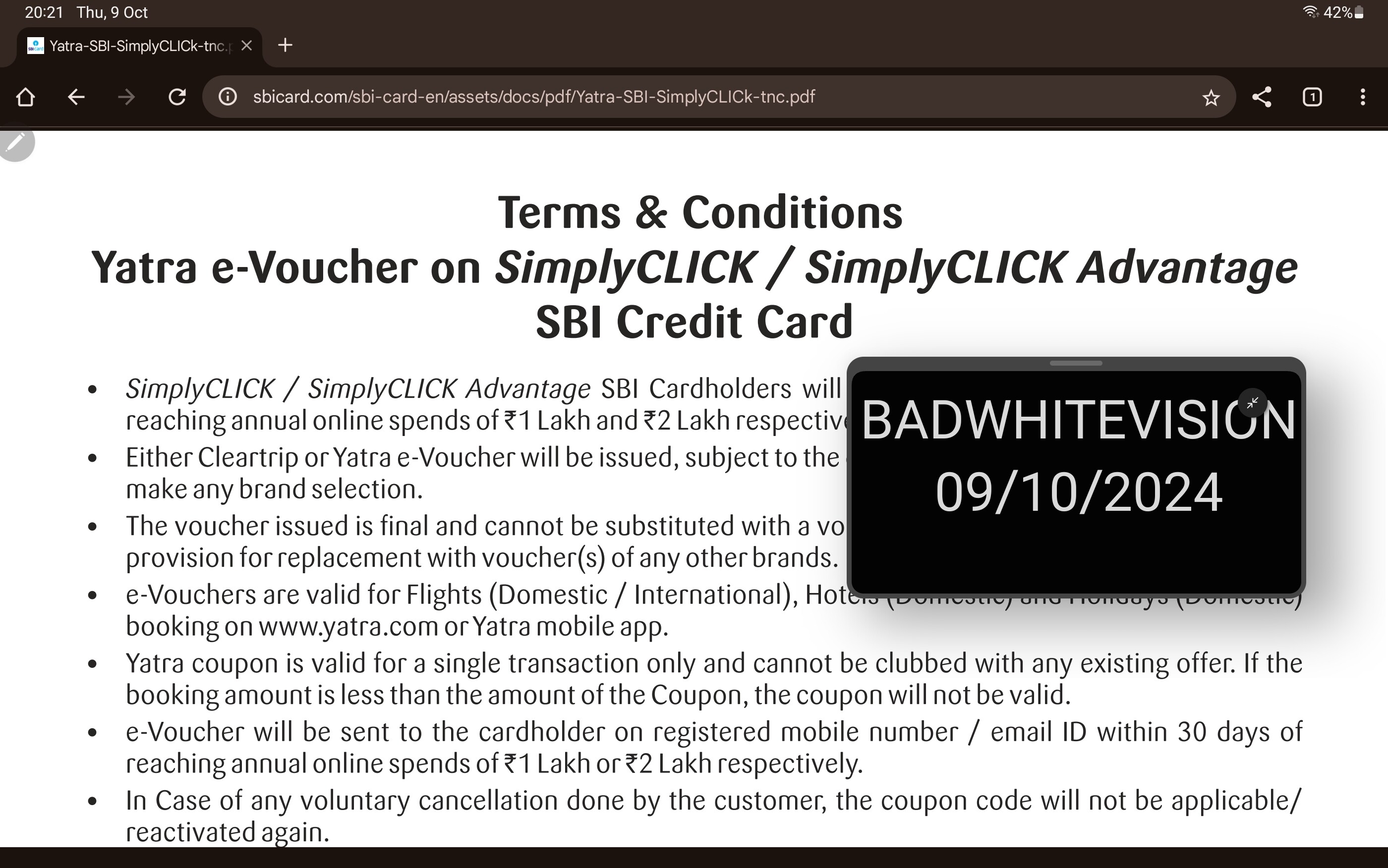 T&C - https://www.sbicard.com/sbi-card-en/assets/docs/pdf/Yatra-SBI-SimplyCLICk-tnc.pdf