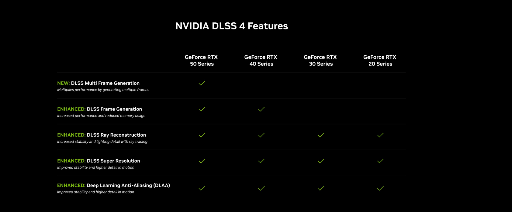 That’s true to an extent — the new DLSS4 SR/Quality modes can be made to run on 20/30/40 cards through DLL swaps, but official DLSS4 support (esp. Frame Gen) is still RTX 50-only. So while it works, it’s not “native” and can be hit-or-miss depending on the game/patch.