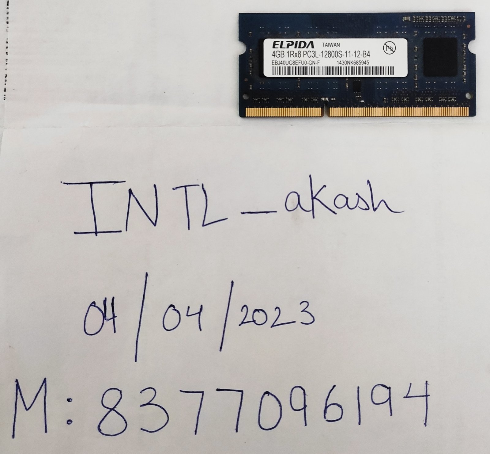 ELPIDA 4gb 1rx8 PC3L DDR3 1600mhz Laptop Ram.