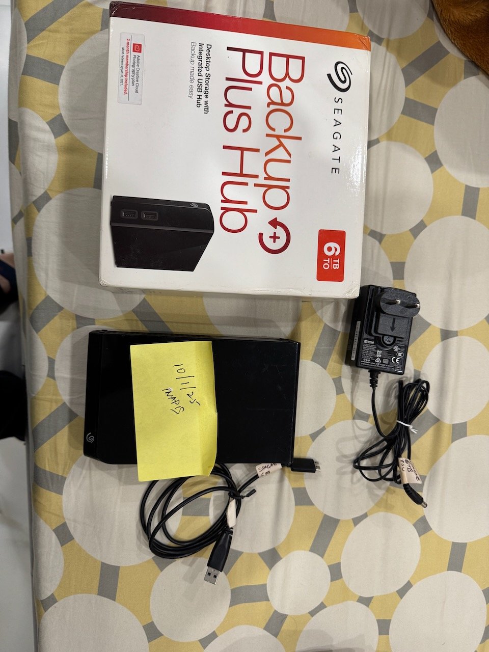Seagate Backup Plus 6TB - Was used as a backup for multiple devices. Casing is a bit dirty but otherwise excellent condition. This was not an active backup device but something which was used every 3-4 months. Comes with power adapter and usb cable. Ships in original box. Expected price 6500.