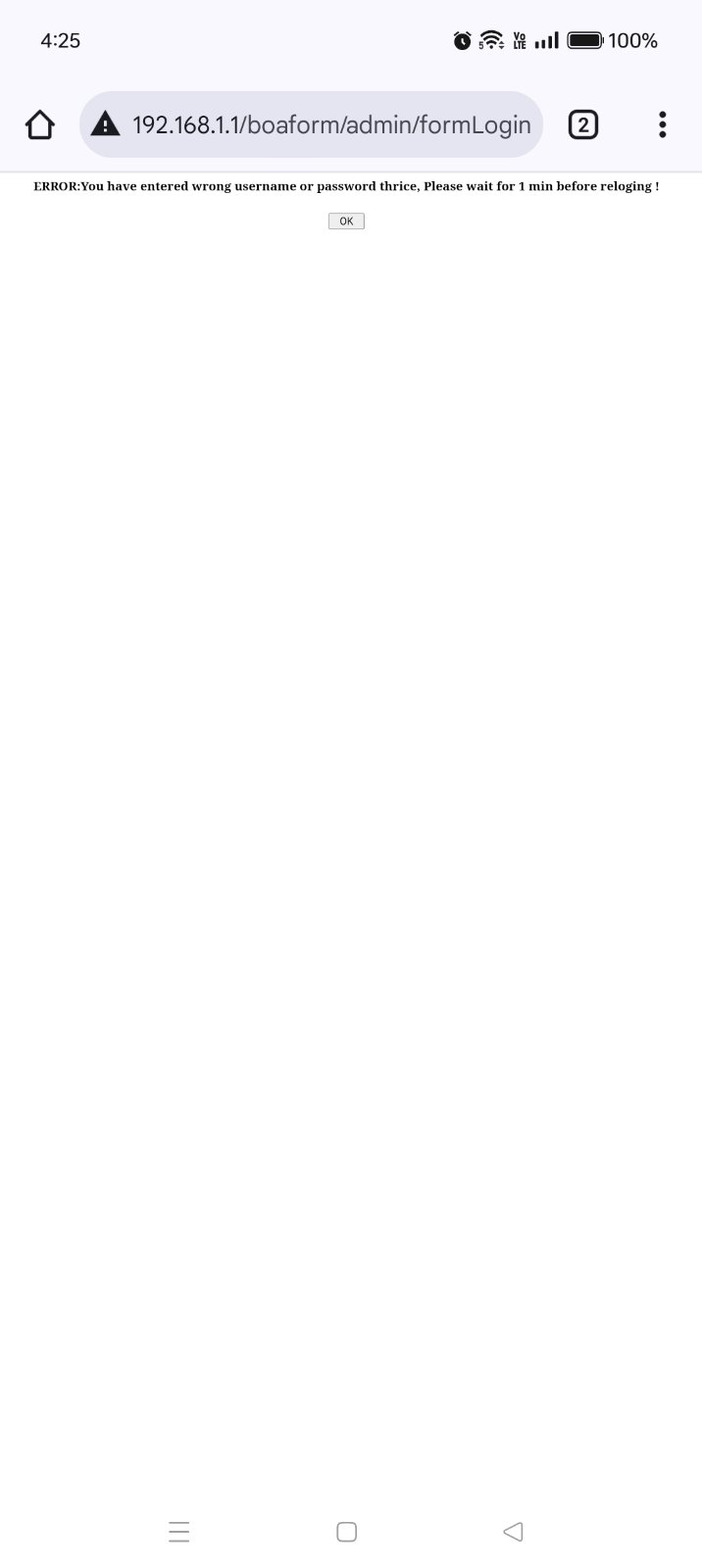BTW My present ONT Router also has these below ones as default credentials: admin/stdONU101. I was getting the below error as in the screenshot when I login into the router.