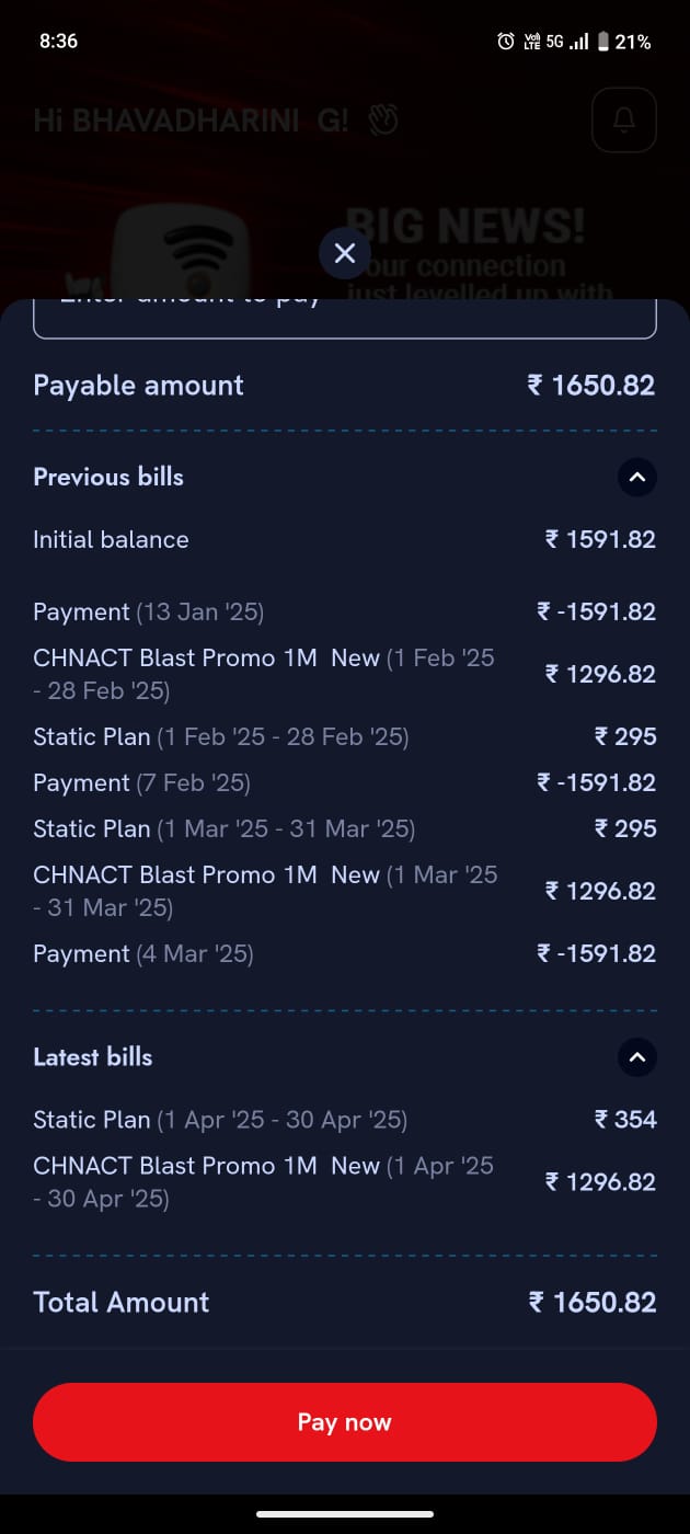 But in 2016 I disconnected ACT and took Excitel for 2 years in Hyderabad and then disconnected Excitel because had to change to new location and there I took BSNL FTTH in 2019 til 2023. Now here in TN I am still using BSNL FTTH.