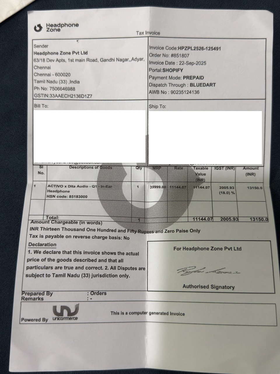 Source and Time of Purchase : 22nd Sep 2025