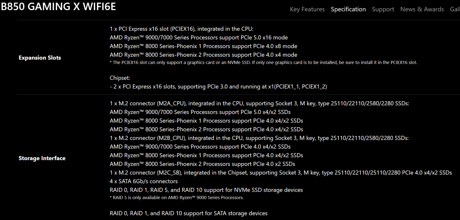 For the B850-GAMING-X-WIFI6E, I mixed up the chipset and cpu lanes.