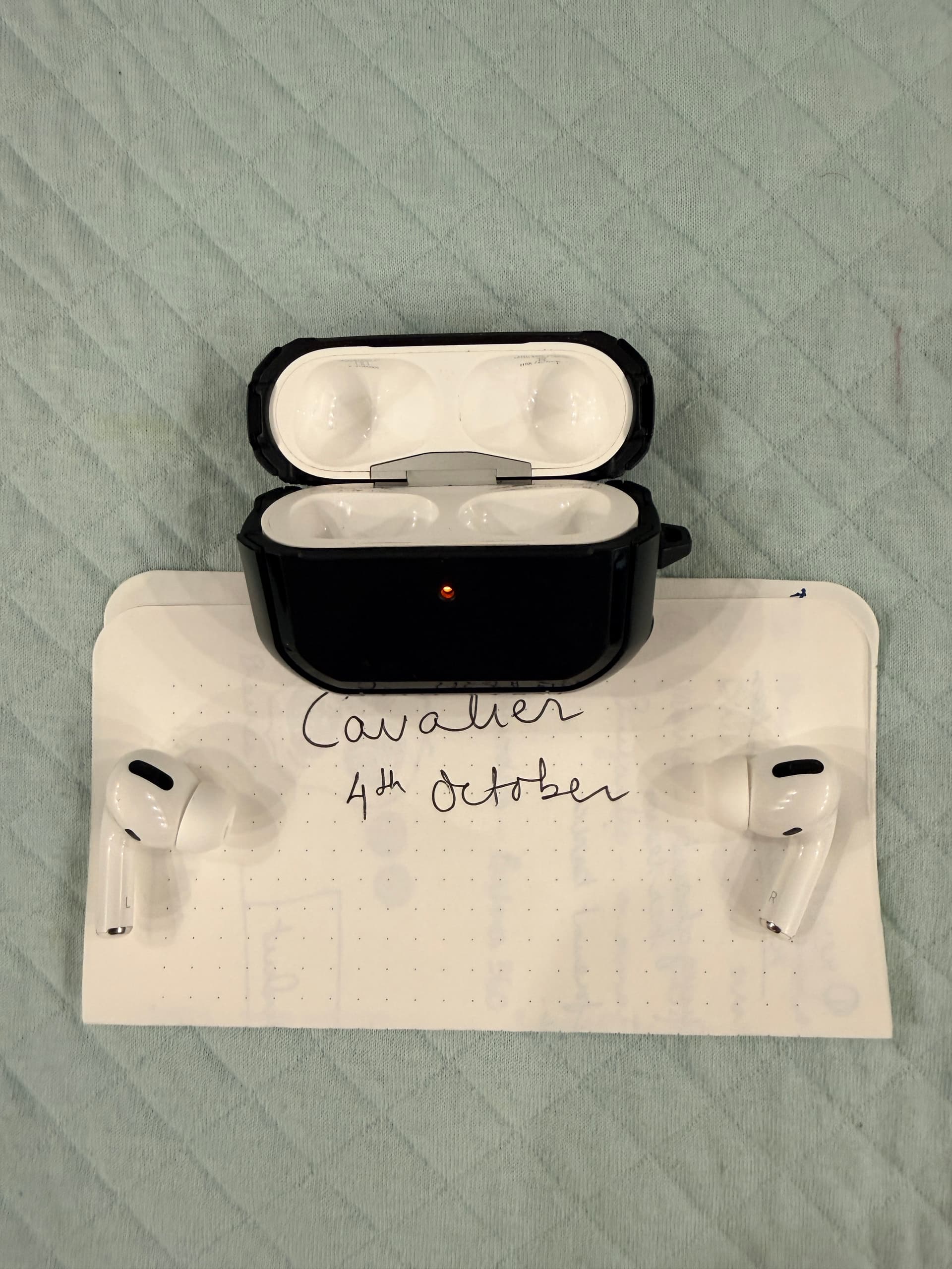 These were replaced about 3-4 months ago via AC+. They haven’t seem much use at all so they are basically brand new airpods pro gen 1. Comes with a spigen case.