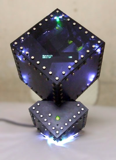 The VFD display was a Noritake one from a group buy over at [H] and PhaetonForums, I connected it to the parallel port by soldering directly to the motherboard and physically removing the connector. It was cool back then to insert 3mm led’s into molex connectors, so that’s how they’re lit up. Power supply was a FSP unit, one of the earliest with Active PFC. It’s installed in the base, with a 10mm green led serving as the power button and light. The hole underneath it was for the reset switch. Construction was with tinted acrylic from a sign making shop. All of the panels except the front one were sanded for a frosted effect. All holes were hand drilled and it was held together with angled strips of aluminum. The top cube was about 8 inches square, so it was very compact.