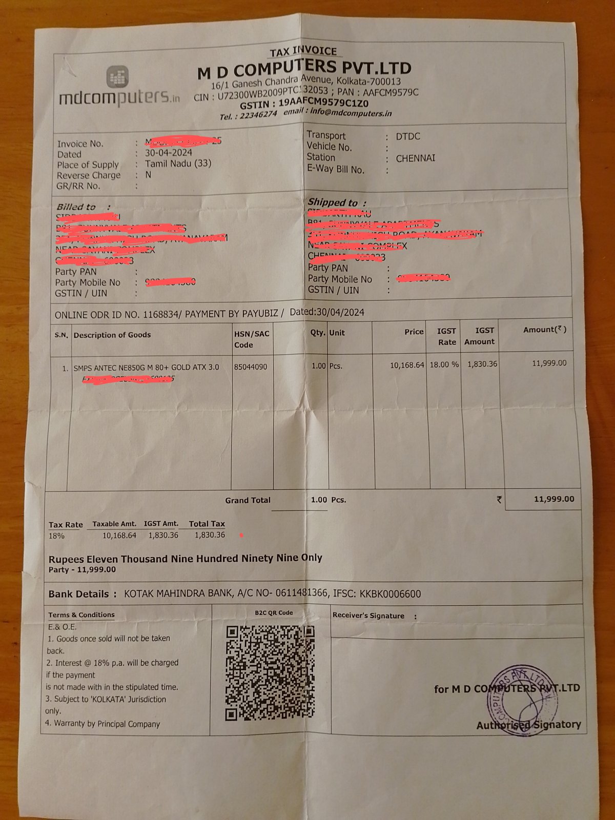 The PSU was bought in April 2024 for ₹11,999. Please do not lowball! Thanks!