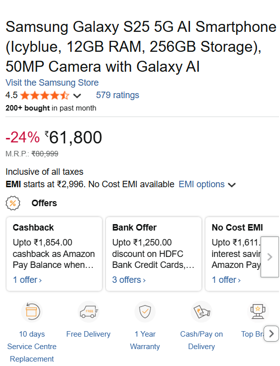 If you reject the delivery at your doorstep (especially for pre-orders, high-value devices, or instant exchange orders), Samsung may deduct a cancellation fee; recent user experiences mention fees of ₹999 to ₹2999.