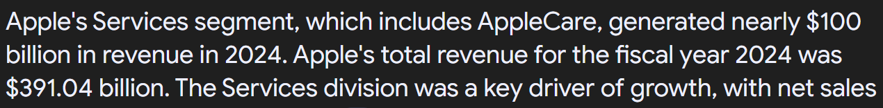 Apple Services includes App Store, Apple Pay, Music, TV+, iCloud among other things which generate a lot of the services revenue. AppleCare by itself is not that large.