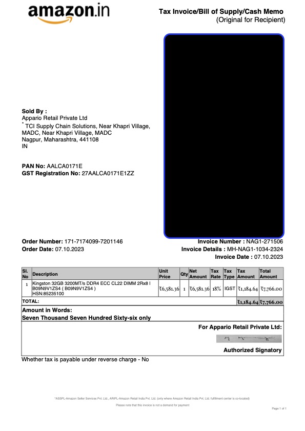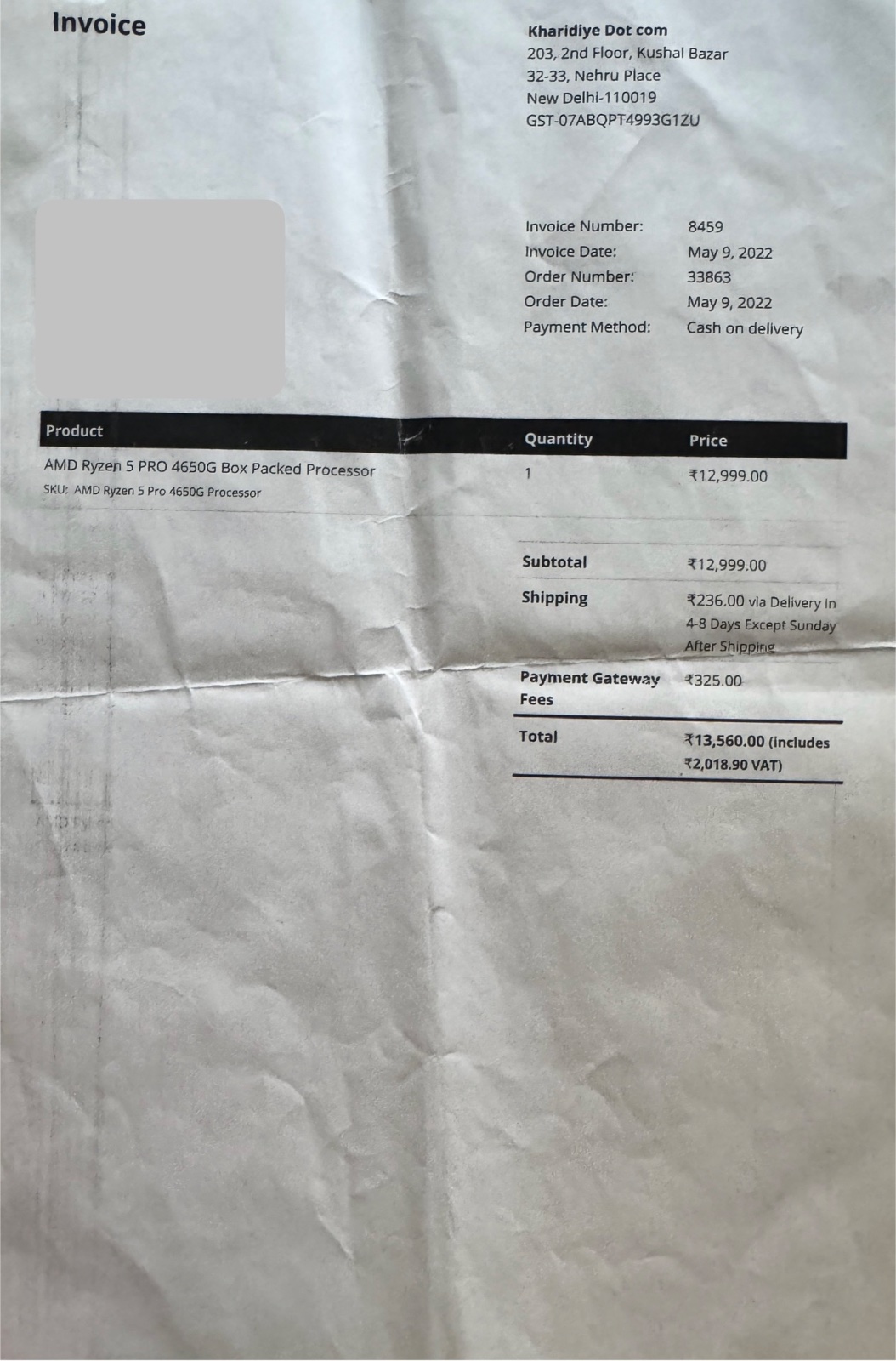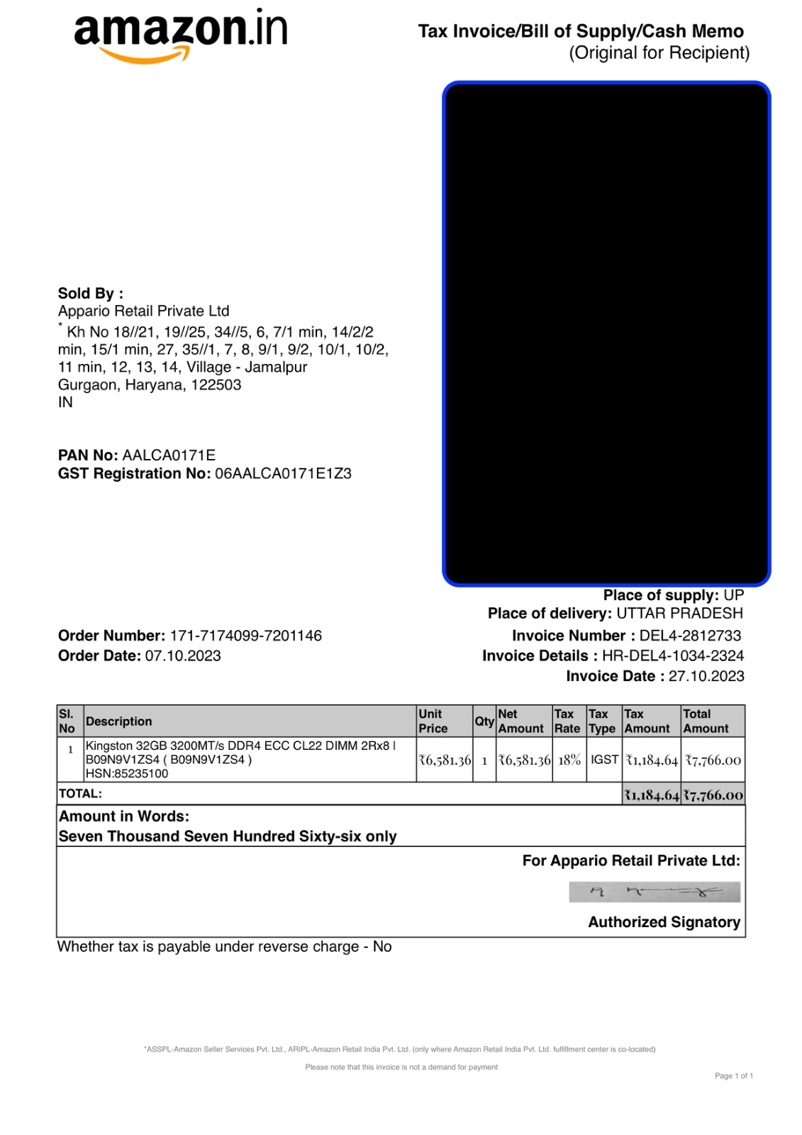 Description: Purchased online on amazon 7th oct 2023. no box .