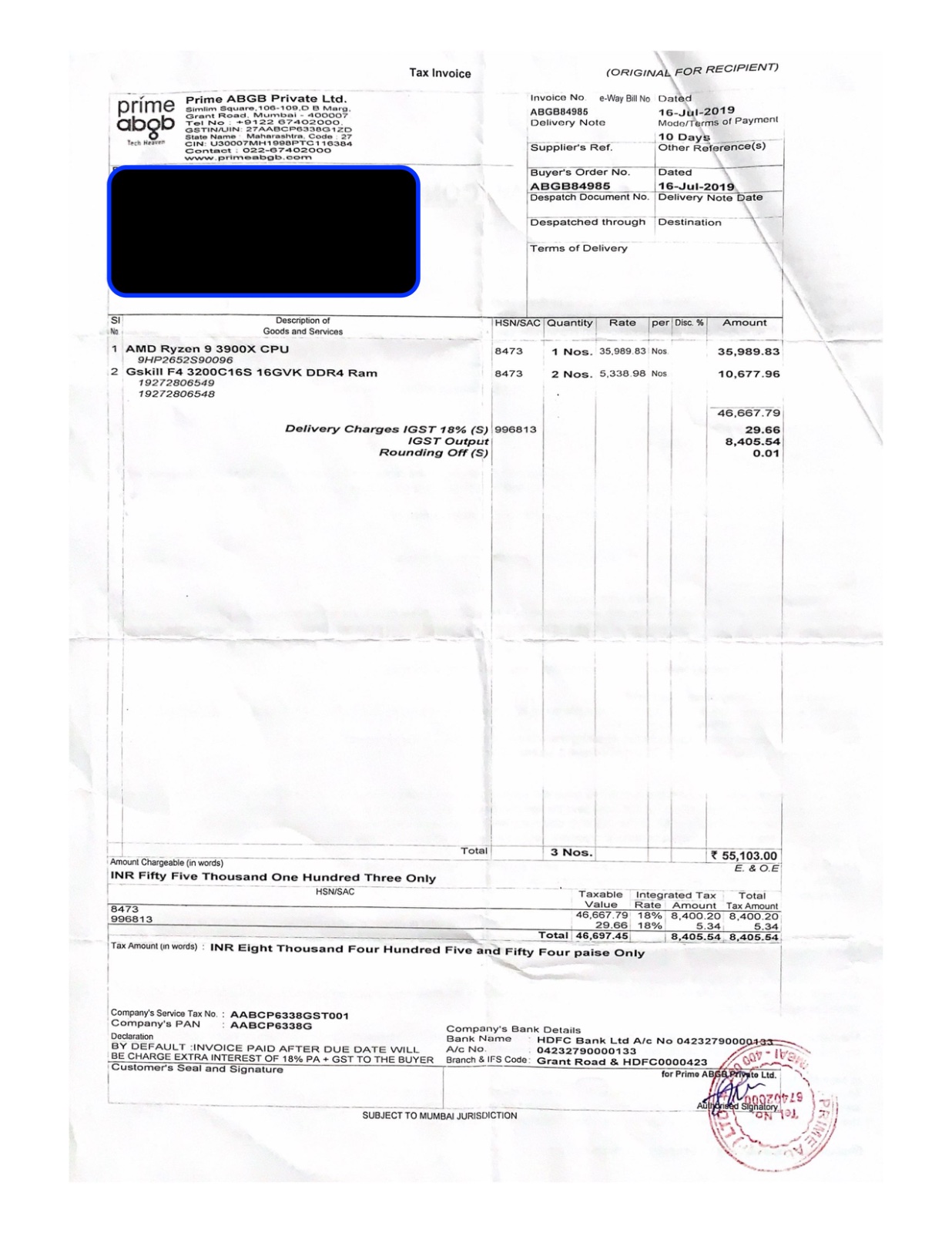 Description**: Purchased online Primeabgb store on 16st July 2019. no box available.