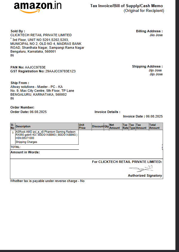 Asrock Phatom RX550 for sale. New one bought on this month with bill/invoice. The project that bought is not working out, so selling.