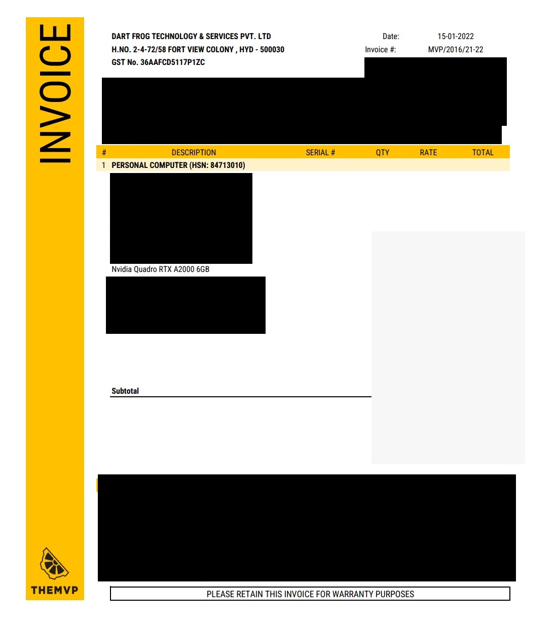 Date of purchase: 15-1-2022