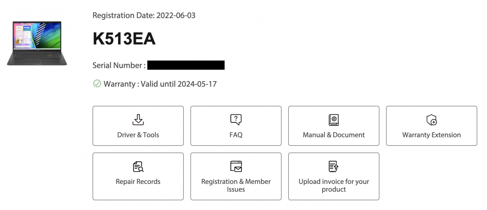 Remaining Warranty period: Valid till 17th May, 2024 (Attached Screenshot)