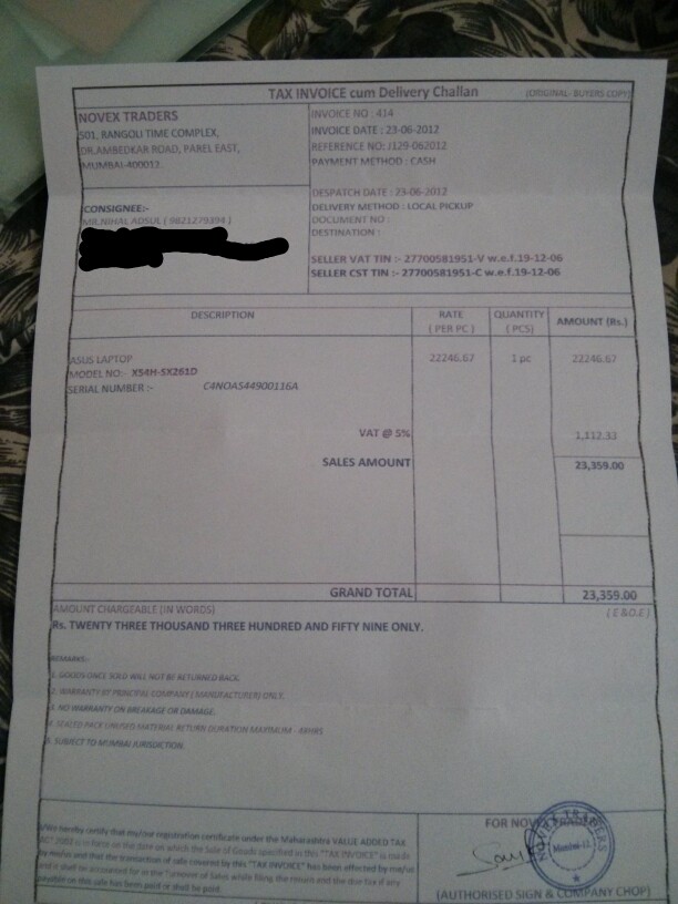 Description if any: 14 months old. No dents or visible scratches anywhere on the laptop. Very low usage. Total RAM is 6GB (2 GB + 4GB Corsair RAM added later). 500GB HDD. Gives ~3 Hours of battery backup on moderate usage. Never needed any Service or RMA. Everything works perfectly.