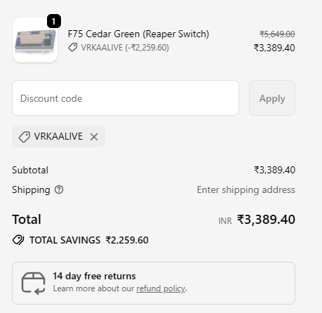 **Discount coupon: “VRKAALIVE”