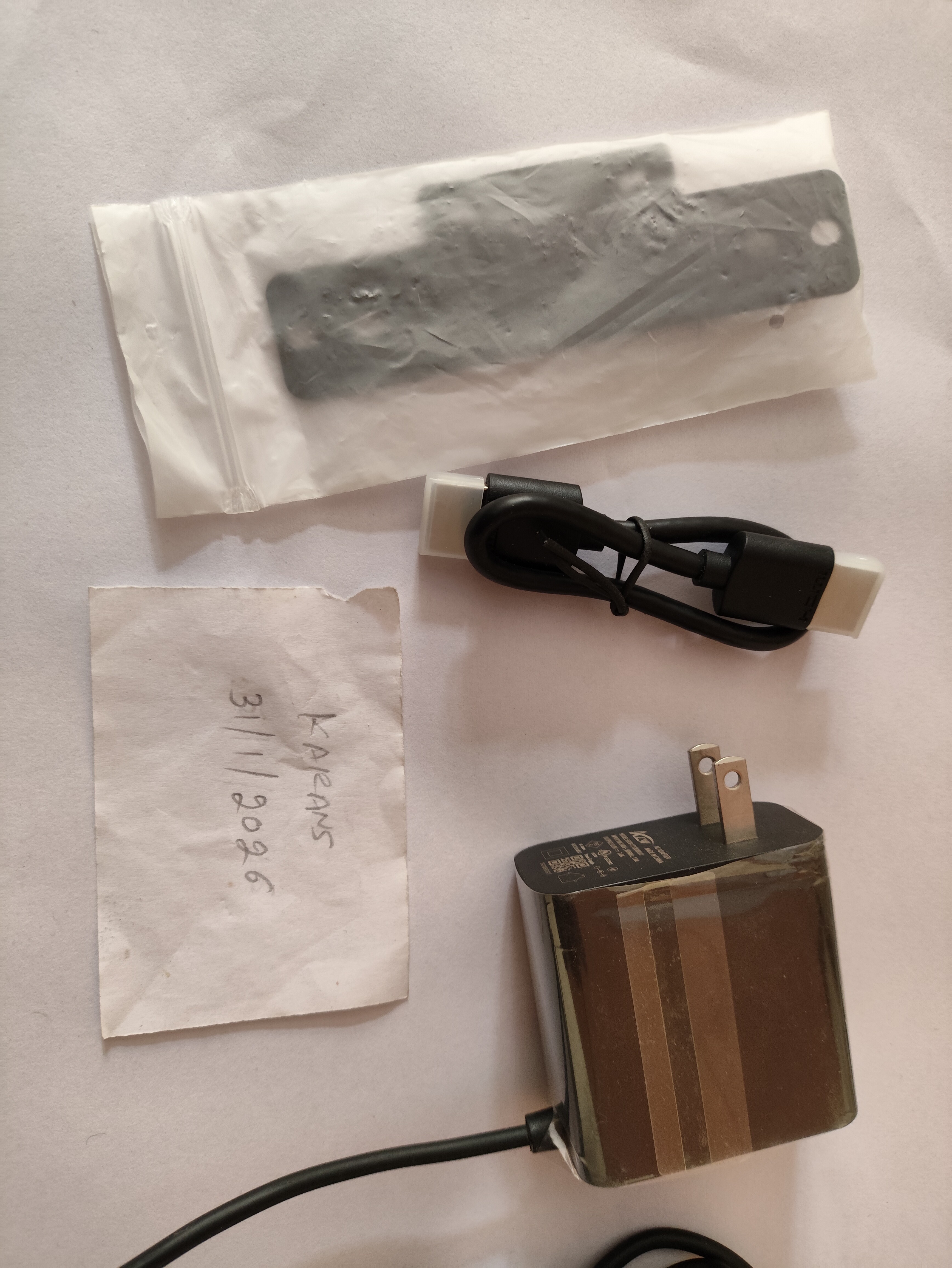 Accessories: Power Adapter (US plug), small HDMI cable, longer HDMI cable (Not in pictures. Will add a random cable from the collection) and Mount bracket.