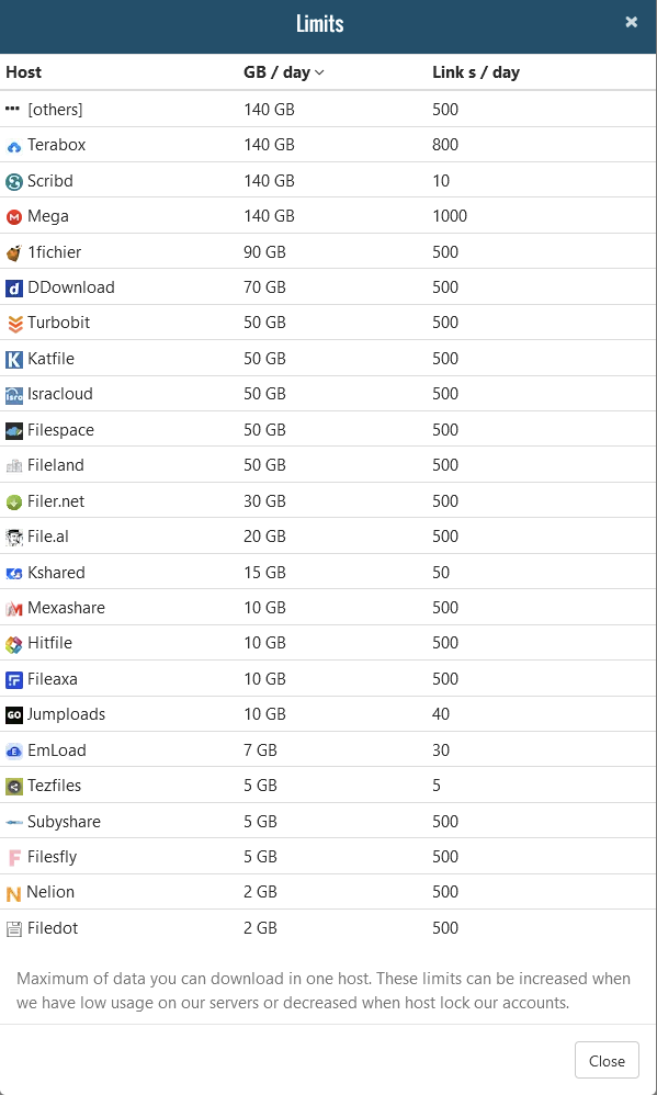 Debrid works for many different websites, although there’s unlimited access to downloads, there still is a daily limit for different sites.