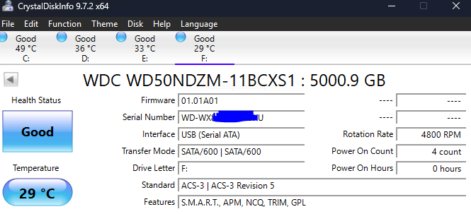 I no longer need a 5TB drive because I am no longer hoarding huge data, so I thought of selling this new drive which is under full warranty. Box is opened just to take pictures and show Disk info for reference.