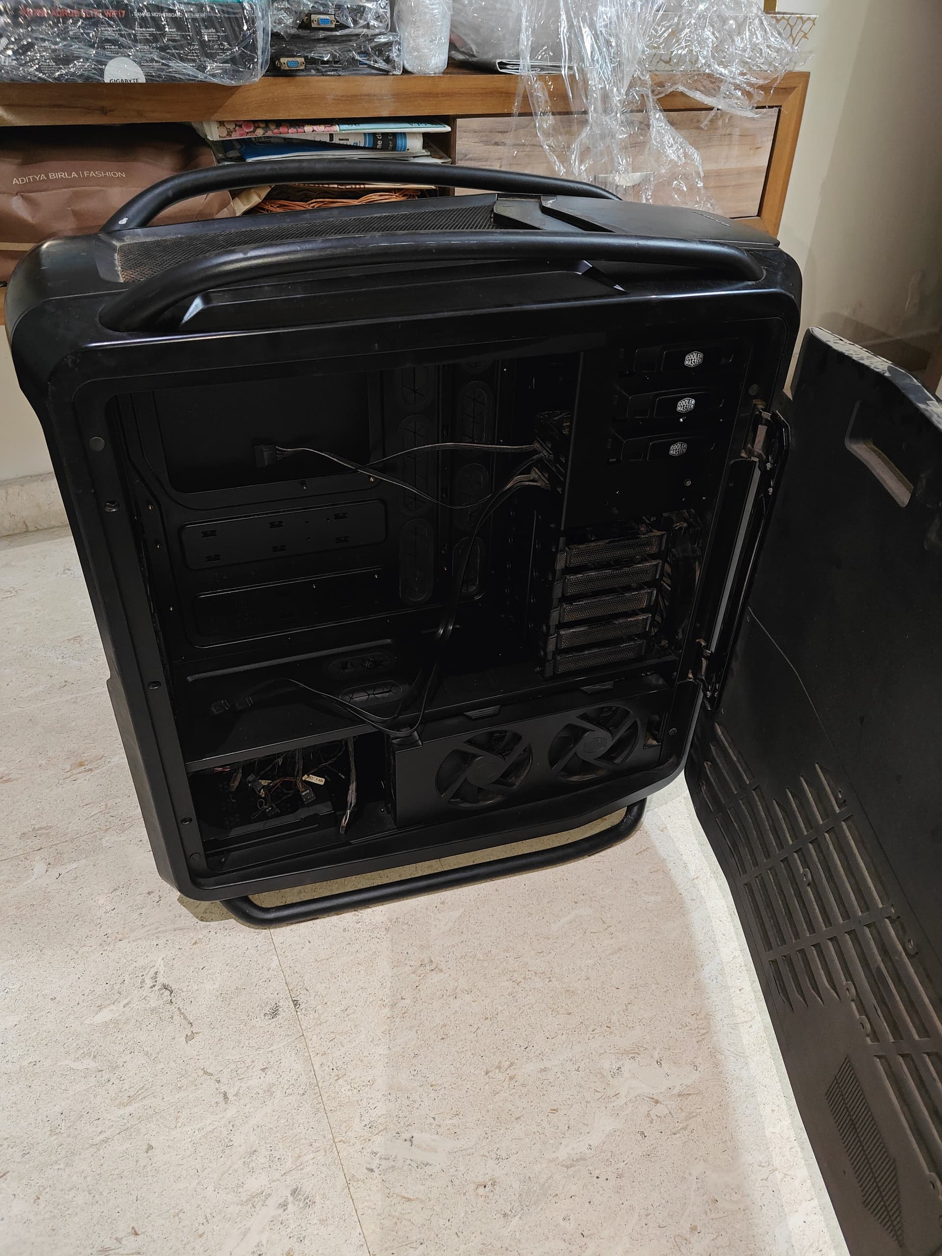 Well I went to Nehru Place to get RTX 3060 and CPU/MoBo combo but got this beast of a cabinet hidden in one of the shop. It’s Cooler Master Cosmos and I paid like ₹6,000 for this one.