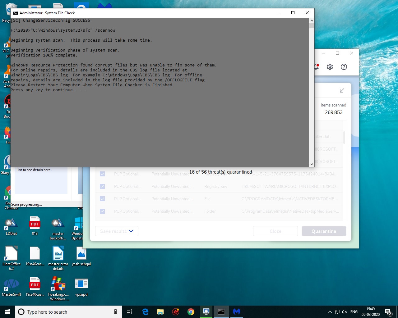 I was also thinking the same so even tried by stopping the antivirus (avast free) but still same position. Looks like I will have to install windows again.