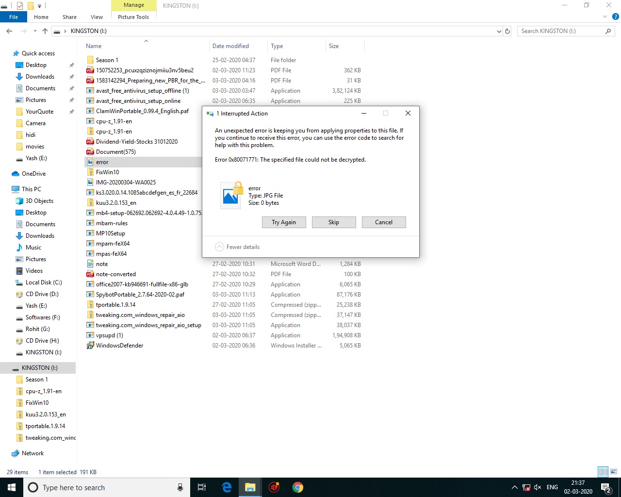 I have some antivirus files downloaded on my office PC which I copied and took home but when I am trying to access / install these applications, it is showing error saying" Windows cannot access the specified device, path or file. You may not have appropriate permission to access the item".