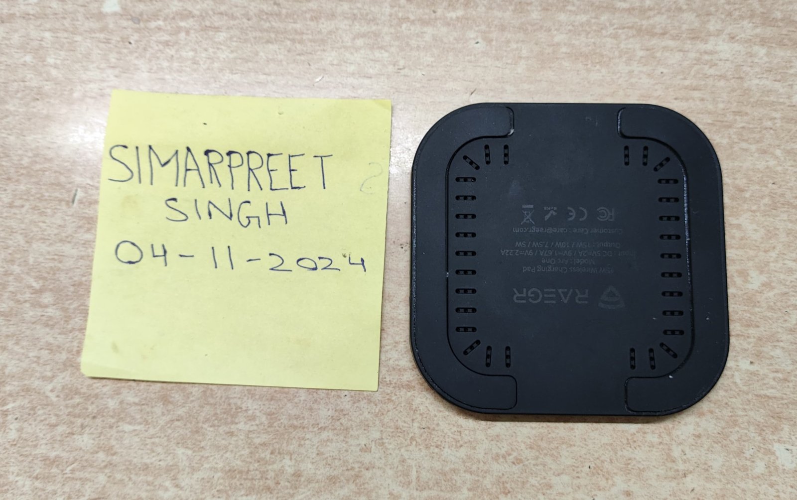 | RAEGR Arc One 15W Type-C Wireless Charger | 4/5 | - It was used for a couple of weeks then kept away (1.5 years) since I upgraded to a phone without wireless charging | - Wireless charging unit |