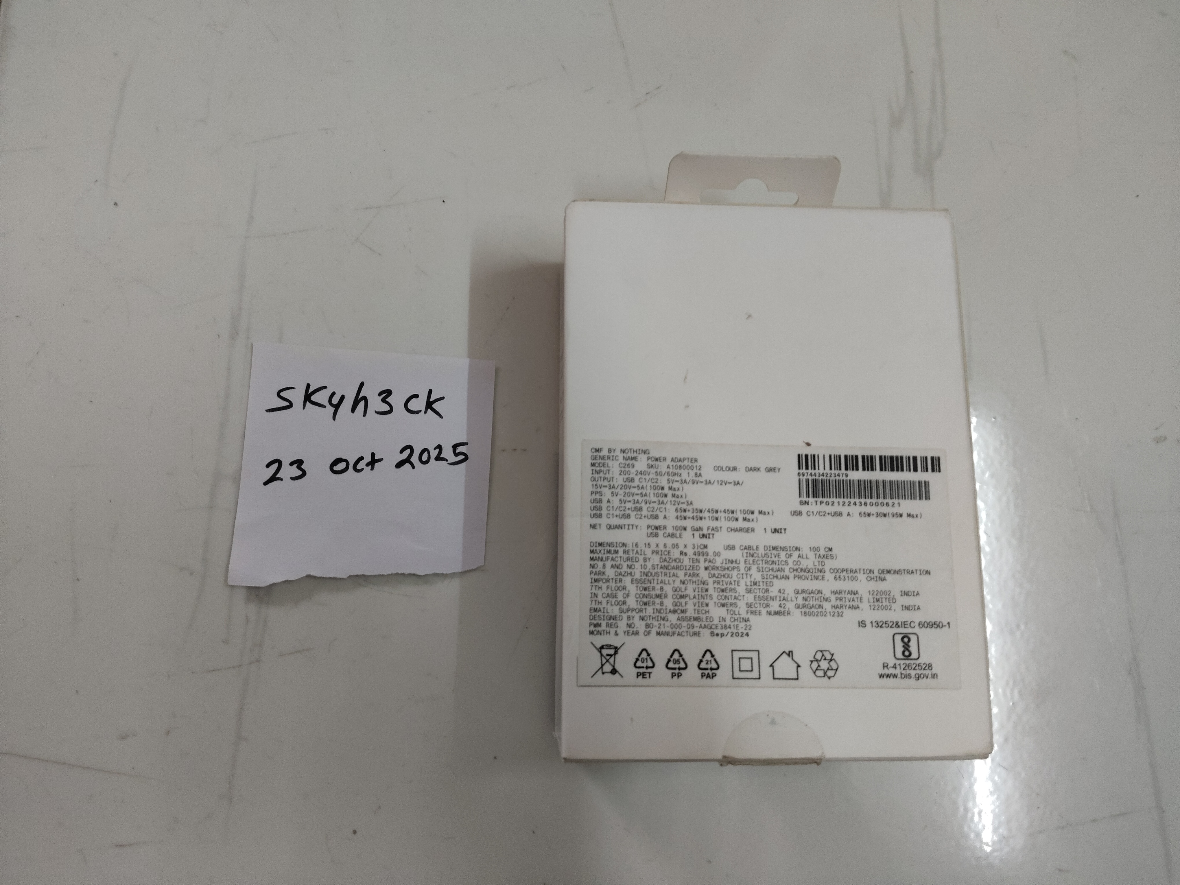 CMF 100w charger with box, cable and manual