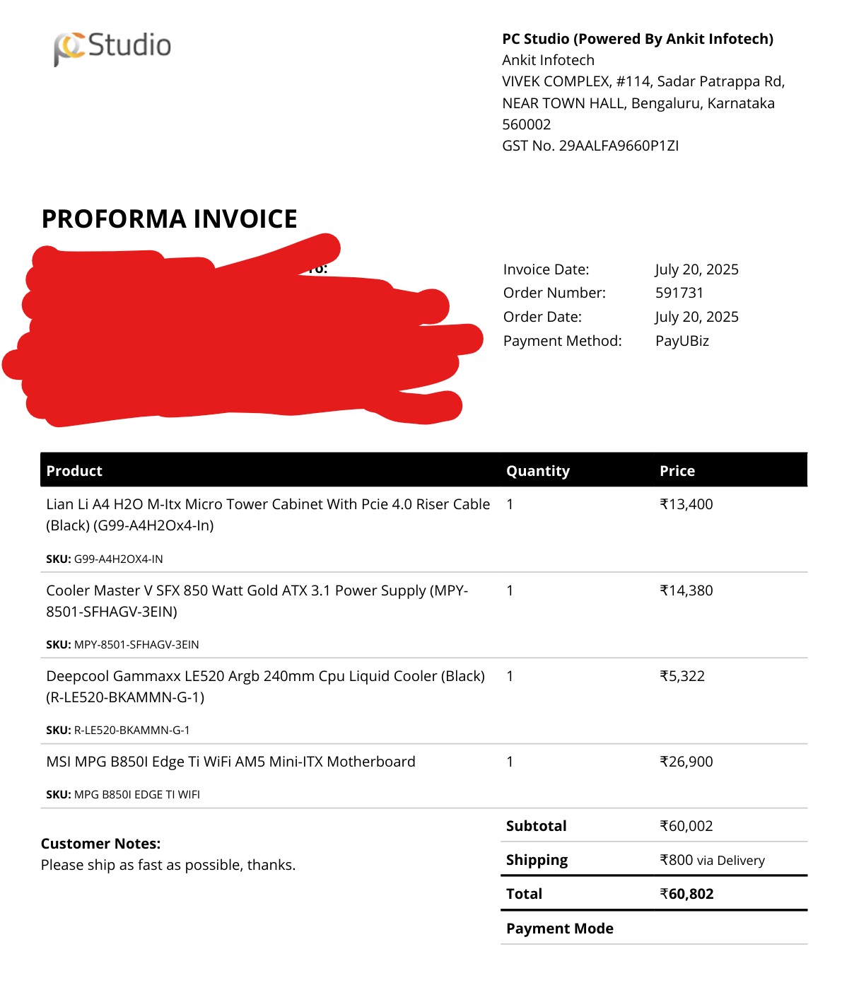 also have an A4-h2o case as seen in the invoice, thinking of keeping it for future builds.. but if anyone is interested let me know in the PMs.