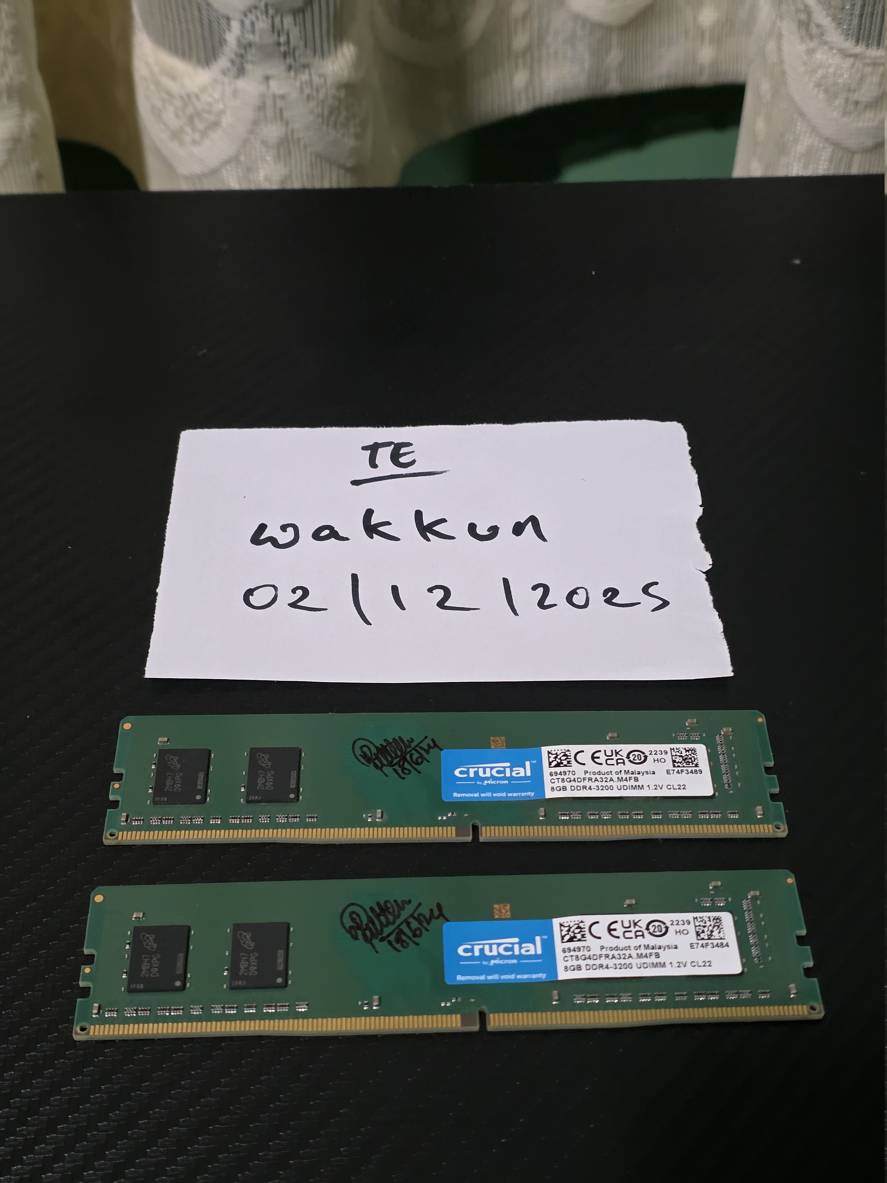Crucial 8GB x 2 DDR4-3200 Ram Sticks