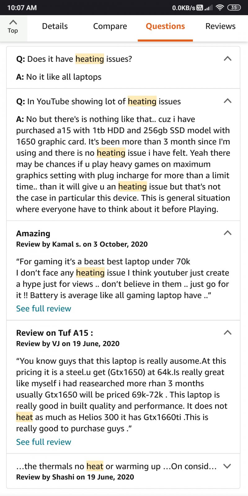 These are from confirmed buyers. Plus Ranjit did an encoding test at full speed in the video I linked above and measured the heat with an infrared thermometer. It was lot more cooler than the 10 th Gen Intel i5 which was at 45+ C near keyboard. So what reviews you saw that you keep saying these have heating issues? I want to see those of possible because I’m considering buying this laptop (or a 4800U model if they become available here) too in coming months or next year.