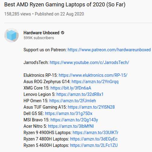 You took a screenshot of a description that simply lists all the models mentioned in the video. Mentions are not recommendations. It doesn’t matter if there’s a much better laptop for an extra 50 dollars if you don’t have the extra $50. There is a difference between terrible, passable and optimal:- There are 2 laptops that can be dismissed from contention quite easily, one is the ASUS TUF Gaming A15, which as we’ve talked about, does have some serious downsides… it runs hot, loud and has a woeful display… - Quote from the video ~7:30.