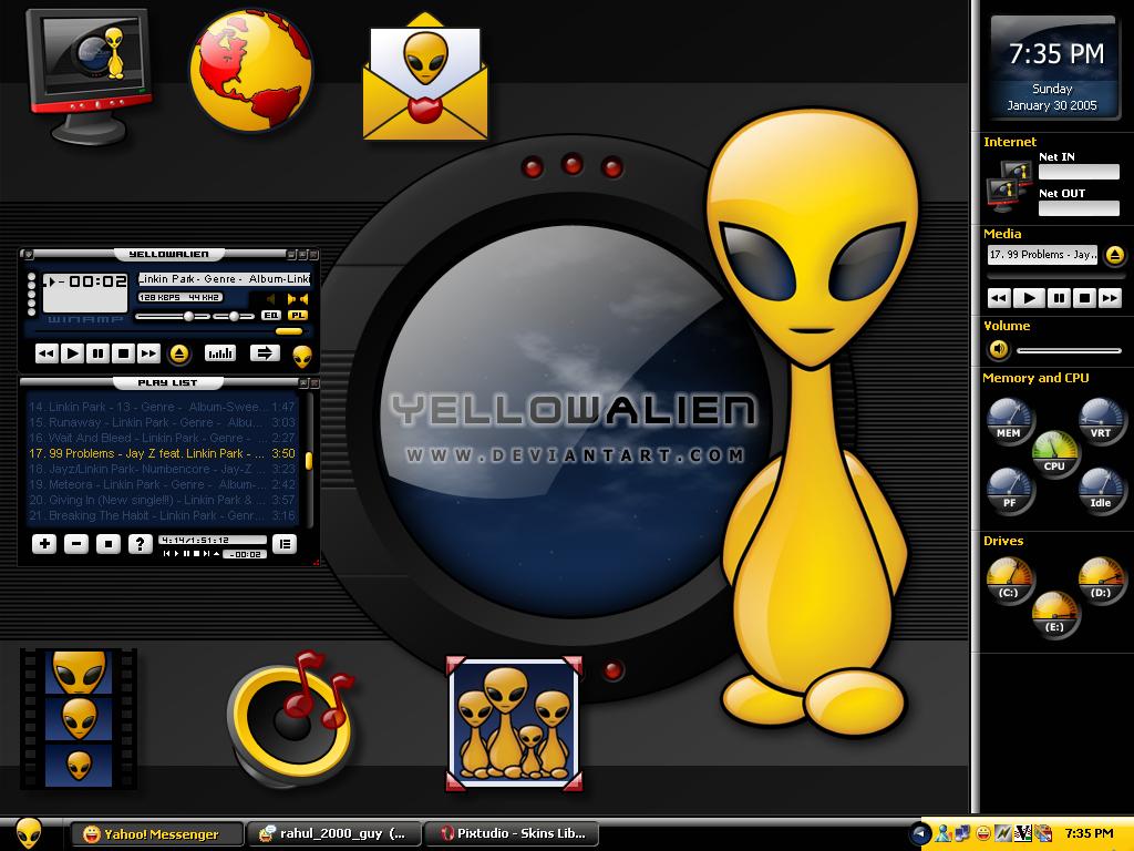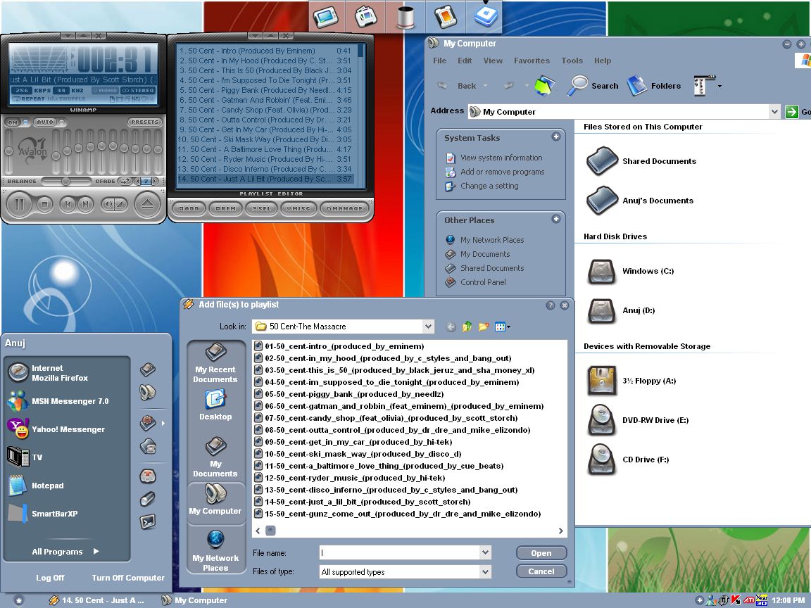 If you have compiled the resources available on the net to build your desktop then please also mention the sources for downloading the same so that other users may also download it. For ex. post the link to the wallpaper or the skins used and the software used.