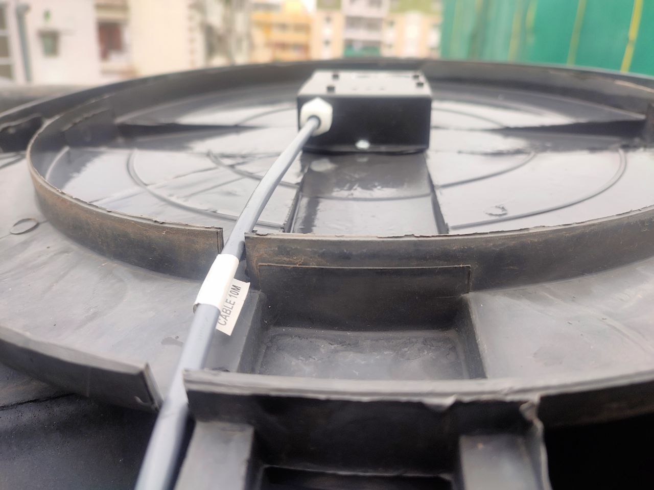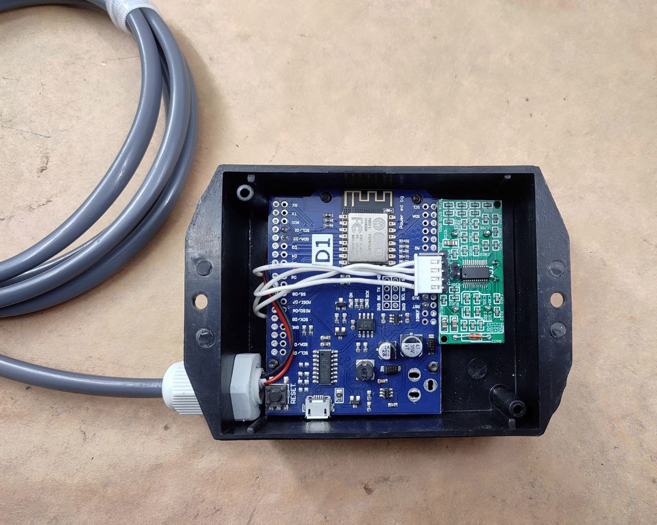 This is then mounted to the lid of the water tank, with a small bit cut out for the cable to pass through: