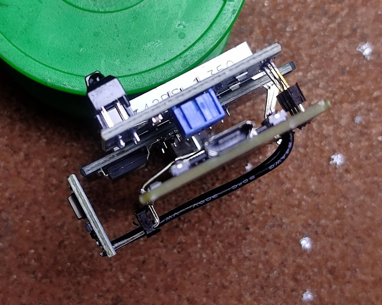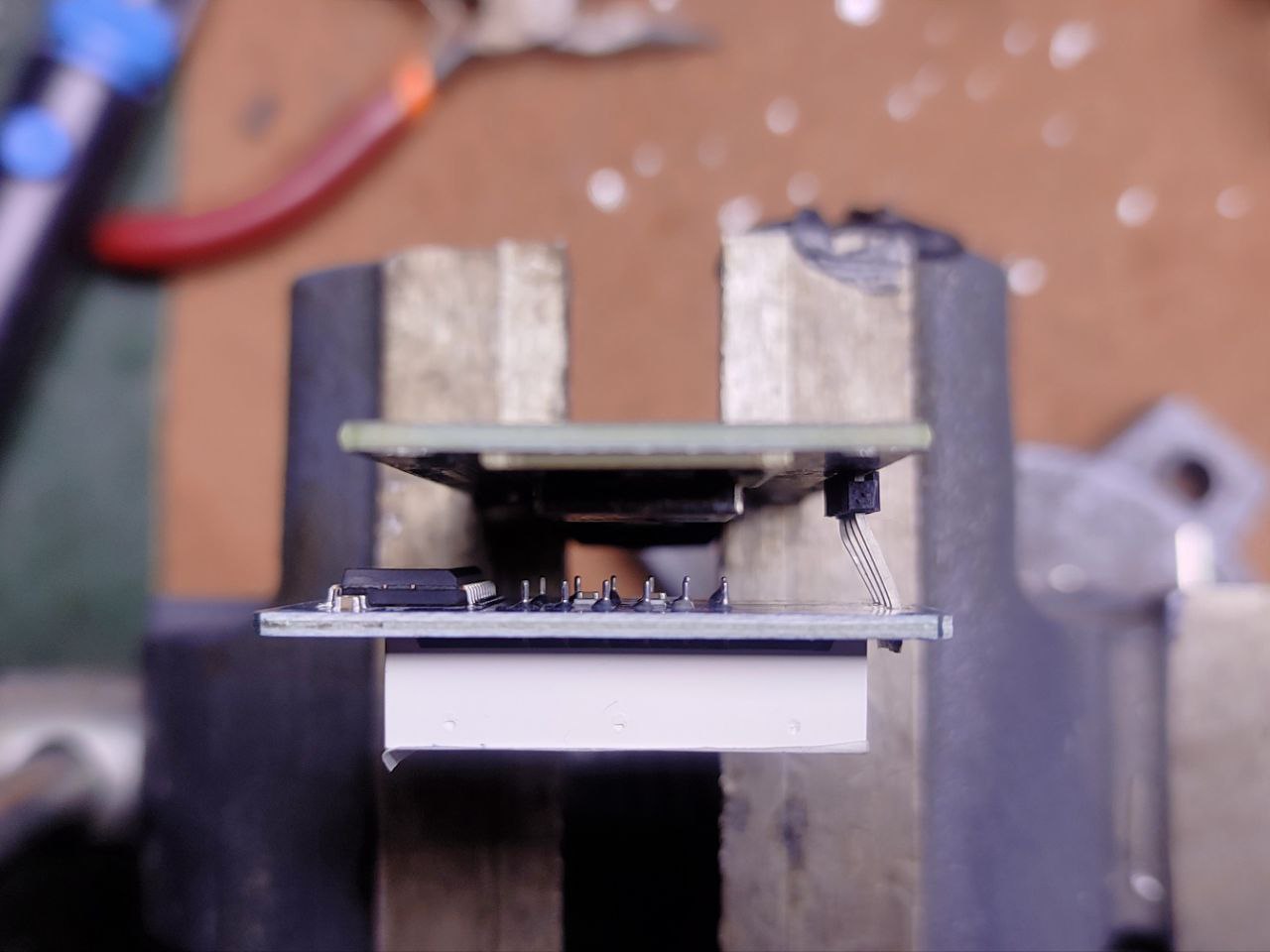 The WEMOS module is hard-mounted with M3 screws and spacers but it’s important that the ultrasonic sensor is not mounted through the metal cans, I used hot glue on the back of the PCB. Applying pressure or fixation to the metal cans will prevent the sensor from working properly, they must sit loose and free.