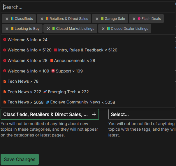 I dont want to get topics in my latest/new feeds for following categories and all sub-categories.