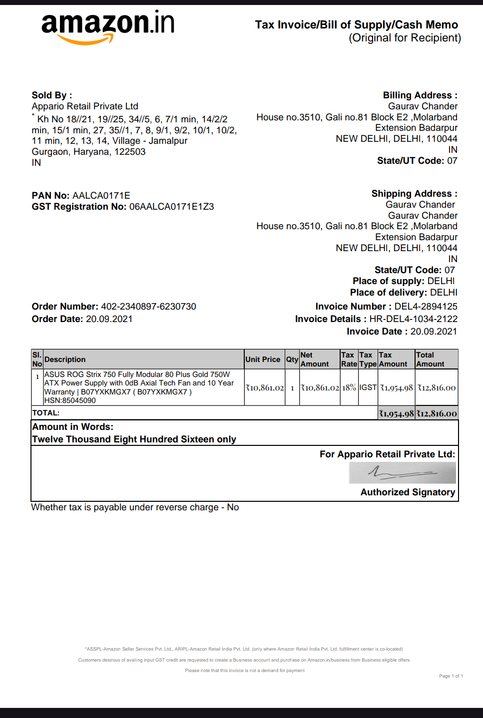 - ASUS ROG Strix 750W 80+ Gold Gaming Power Supply