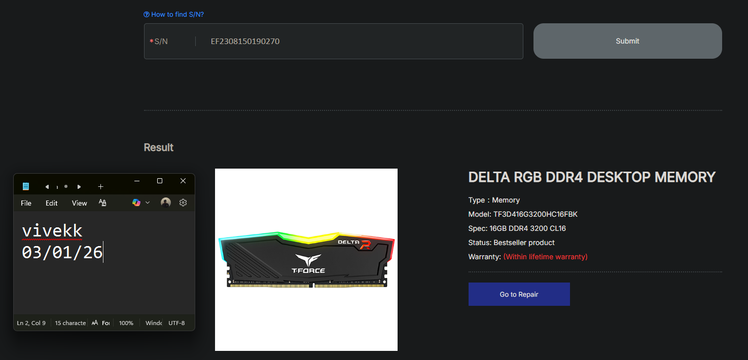 Posting my freshly RMAd Teamgroup Memory Sealed Unit.