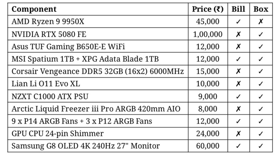 In case someone wants individual parts, here’s the list and my expected prices. I have the inner clamshell of the 9950x so shipping shouldn’t be an issue. All the strimmers are the latest wireless ones by lian li.
