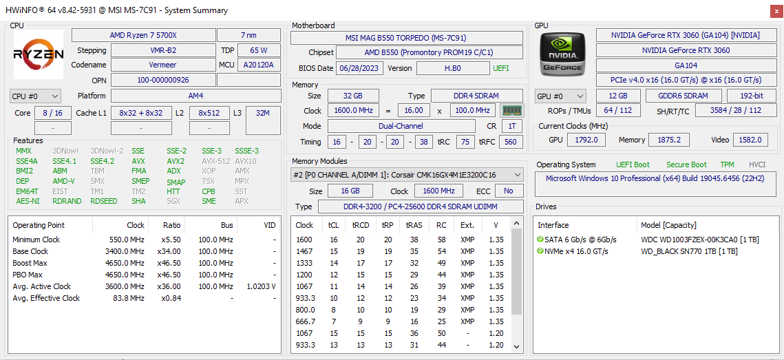 - NVMe : 1TB WD Black SN770 NVMe Gen4