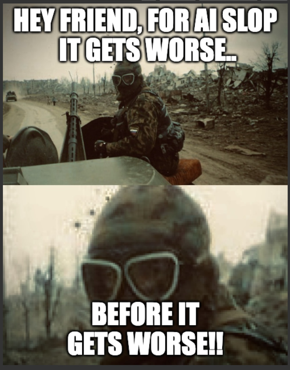 Maybe just me, but i am getting tired of AI generated text. Not talking about this thread or the series, but in general across forums. You get a mountain of text to read through, with potentially faulty info. Sometimes its not even disclosed that this was AI generated and i dont feel like putting effort to read or reply to something that was generated with low effort. Happened once in another forum. Some oversmart dummy was just replying without even understanding. Waste of time. Again, not taking about this one, i just scanned it and did not bother to read much.