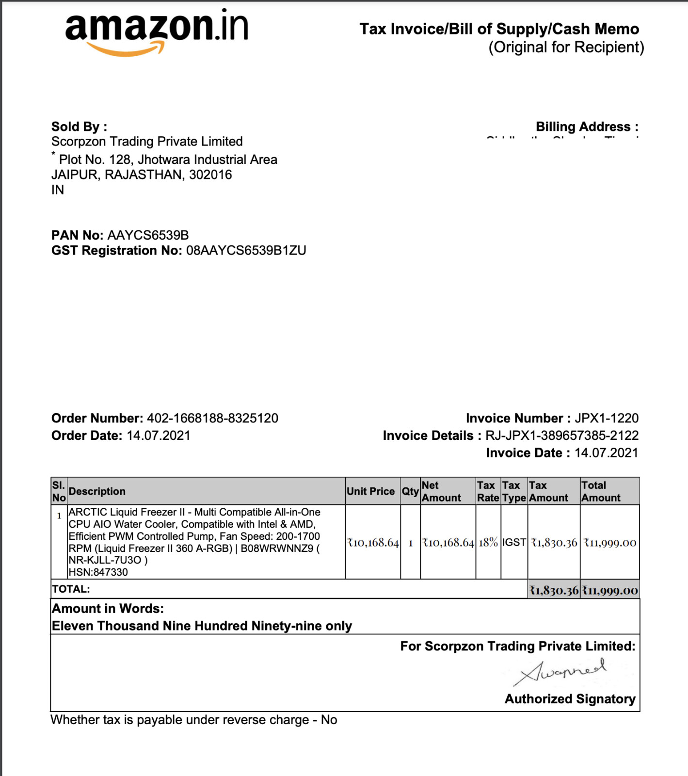 **Arctic Liquid Freezer II 360 mm AIO ARGB with 03 additional matching ARGB Fans in Push Pull Setup: Expected price Rs. 10000/-. **Bought in 14.07.2021 and 19.07.2021. Working flawlessly. Box Bill and accessories available. Condition 8/10(due to age). Not sure about warranty support in India.