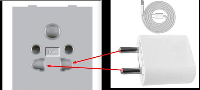 One may not realise it but chargers don’t come with standard 2 pin plug layout. Chargers have bigger prongs like 3 pin plug and spacing between prongs is also like 3 pin plug.