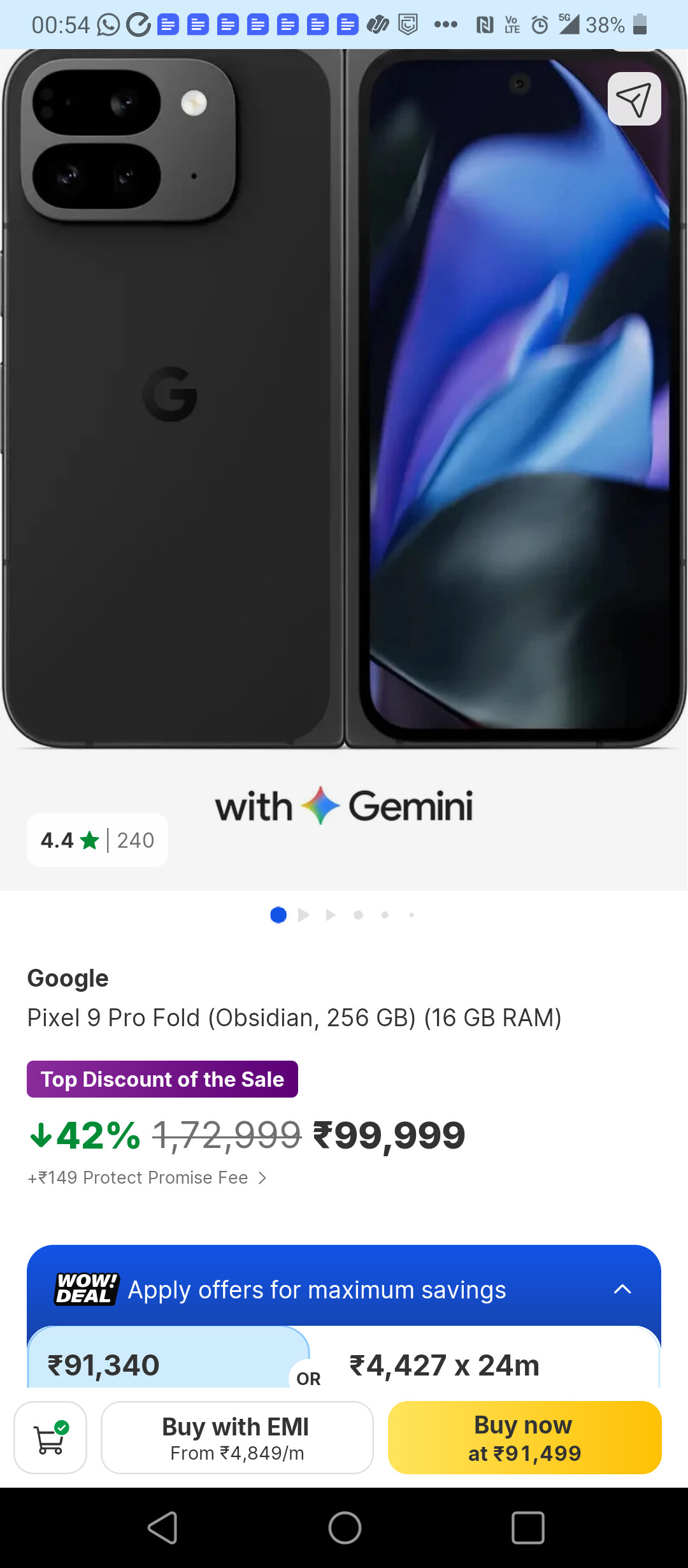Link (in new line below): Take a look at this Pixel 9 Pro Fold (Obsidian, 256 GB) on Flipkart