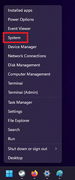 - Right click on the Start button and select System.