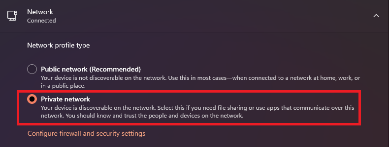 Now, we need to ensure that your Windows PC is on a private network:
