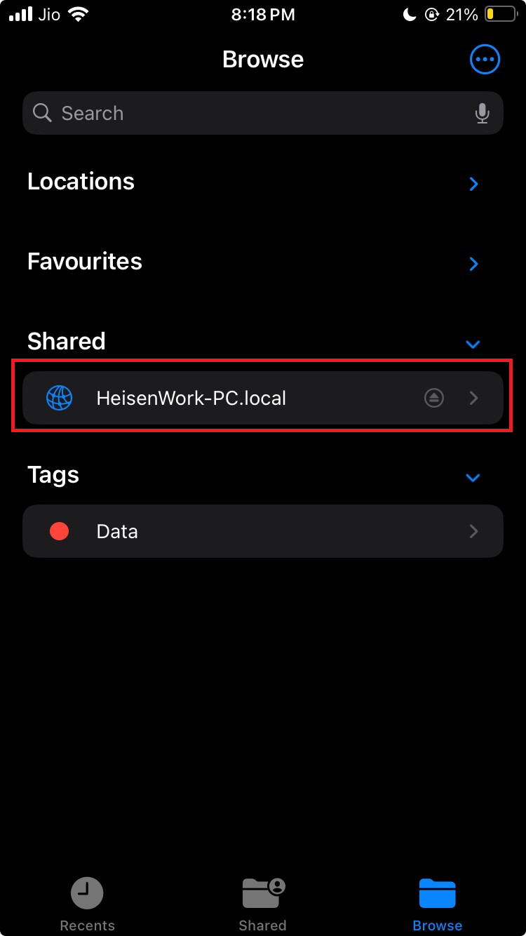 smb://[PC_Device_Name].local(e.g.,smb://HeisenWork-PC.local).- Tap Connect.