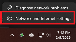 - Right click on the Internet access icon in your taskbar.