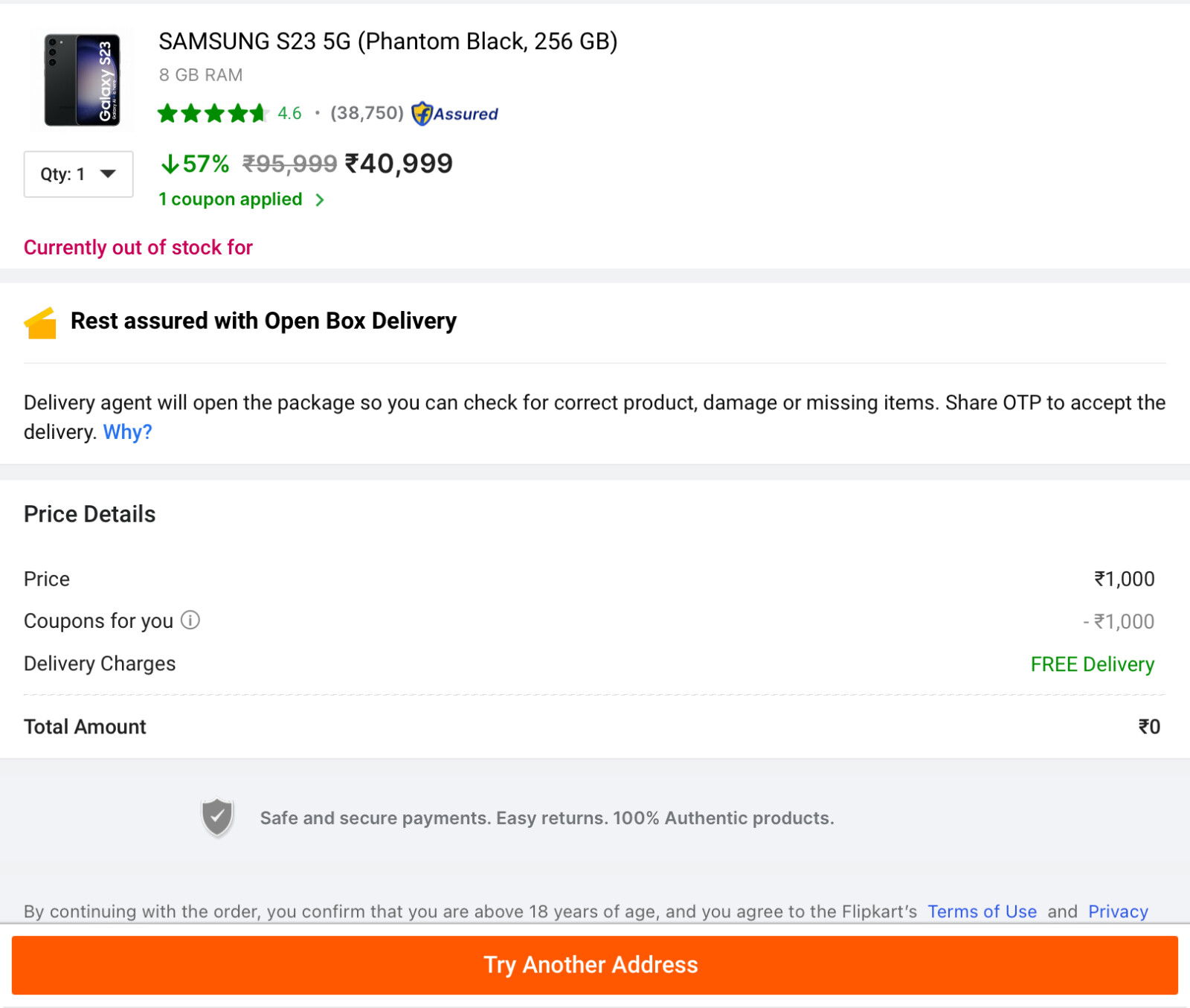 You’re right. Just after I click on buy now it asks for another address saying not available at my pincode (!)